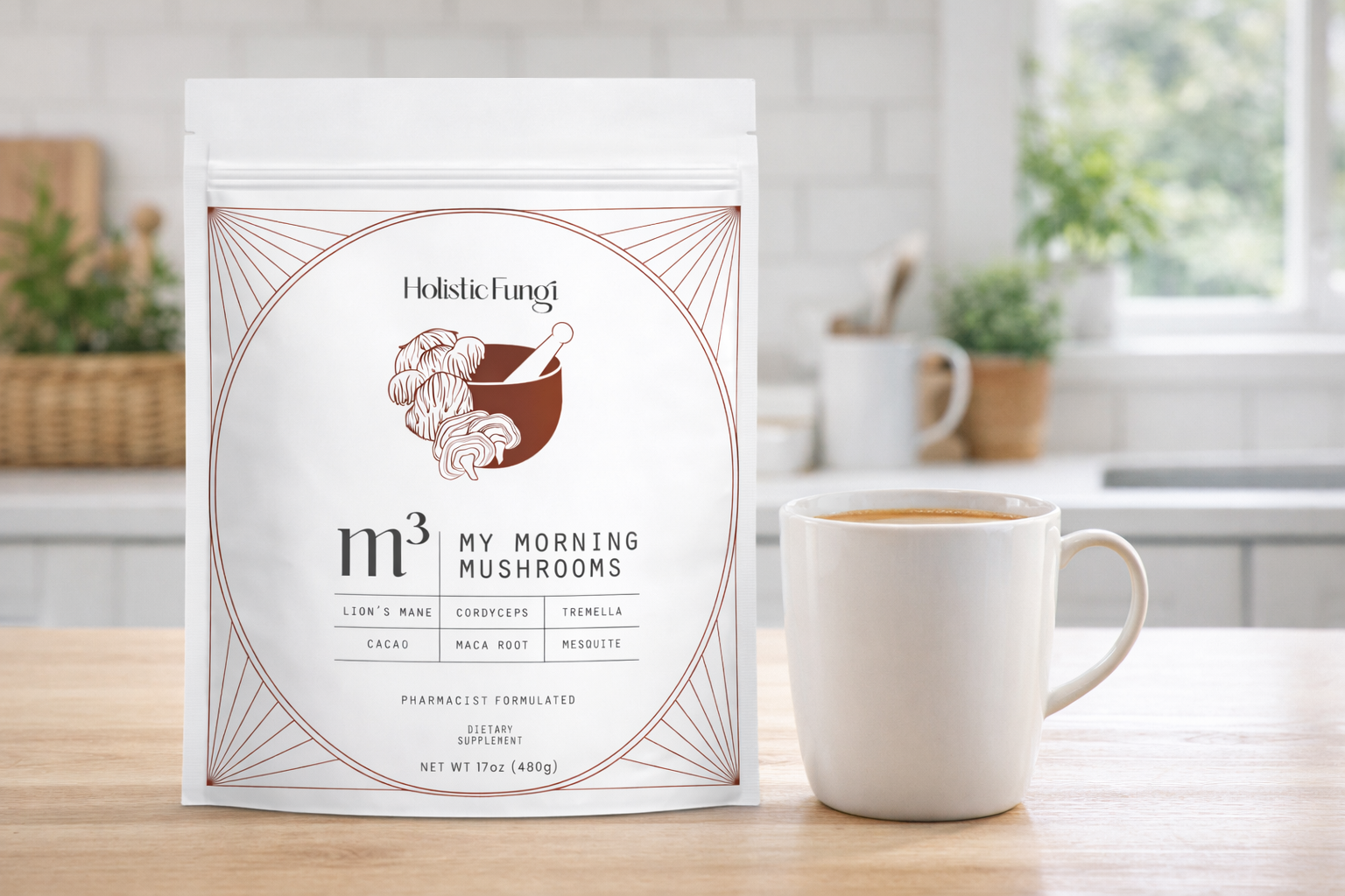 A daily functional mushroom drink blend designed to support focus, energy, skin hydration, and immune health.