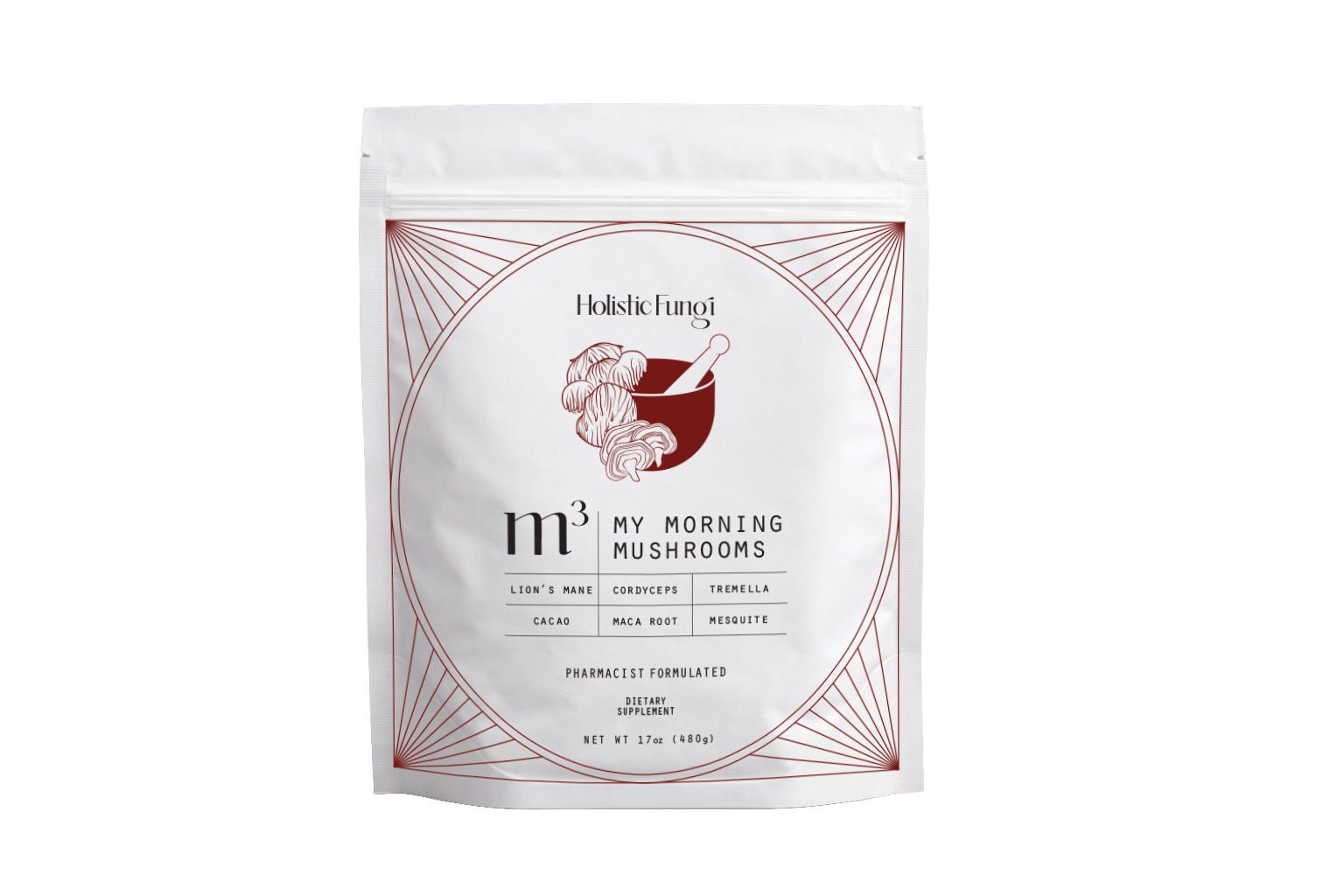 m3 contains 100% organic fruiting body extracts of lion’s mane, cordyceps, and tremella, combined with cacao, maca root, mesquite, organic coconut milk powder, and a small amount of organic coconut palm sugar.